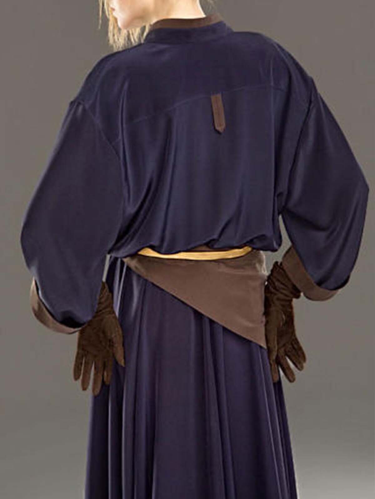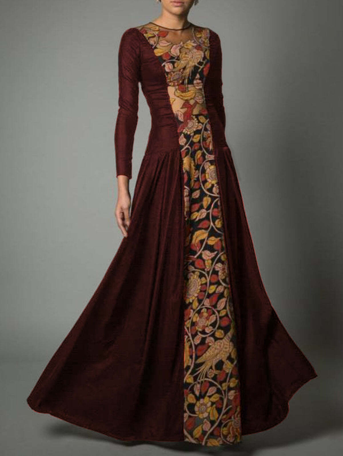 Elegant Crew Neck Long Sleeve Color Block Stitching Gown