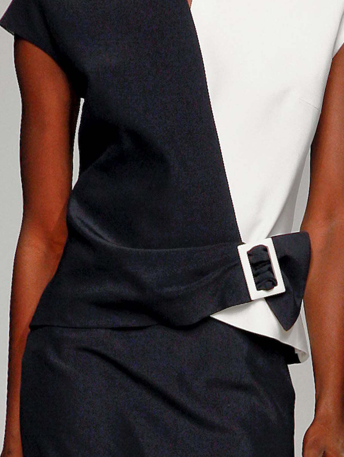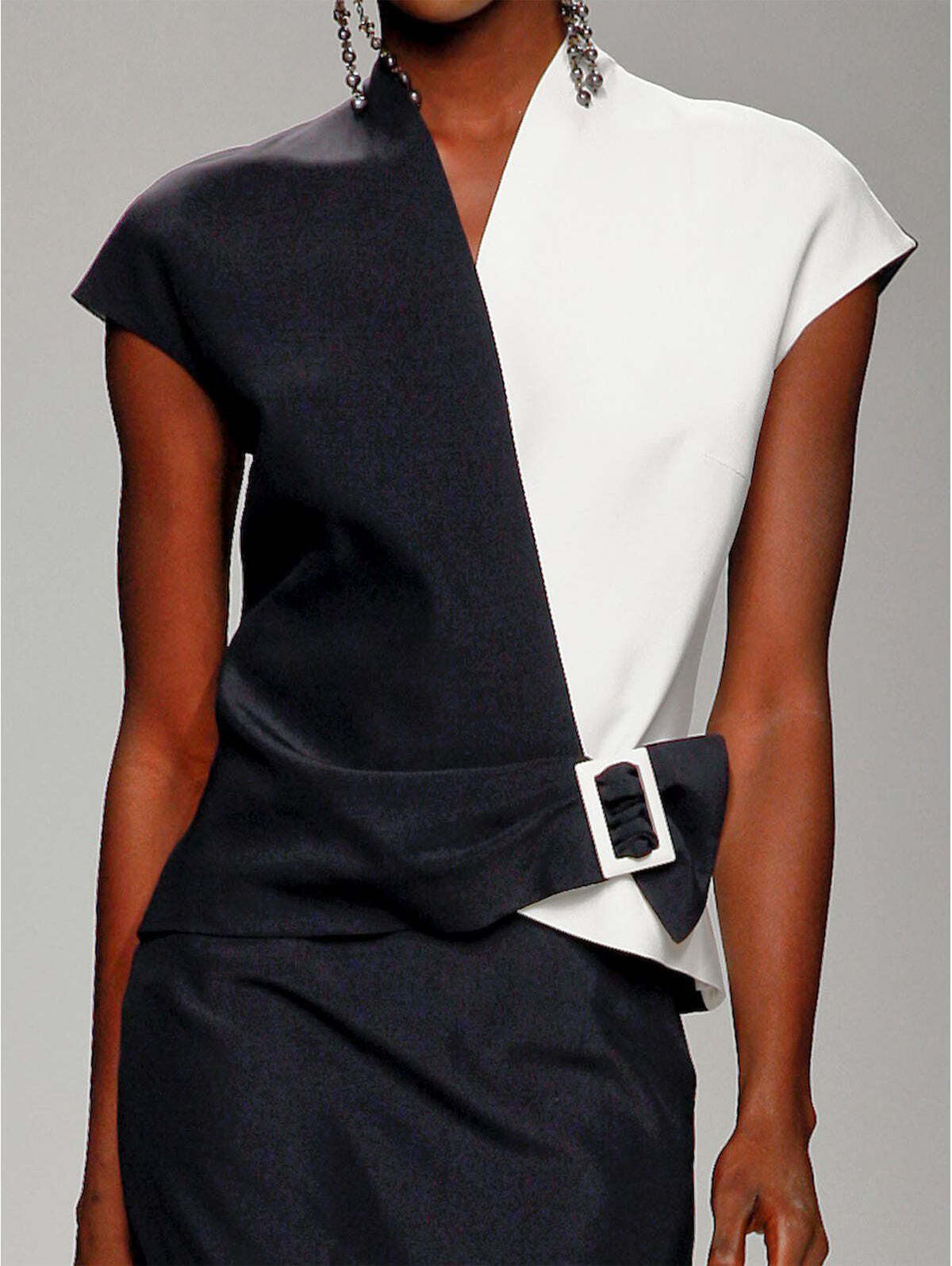 Elegant V Neck Two Tone Contrast Cap Sleeve Top