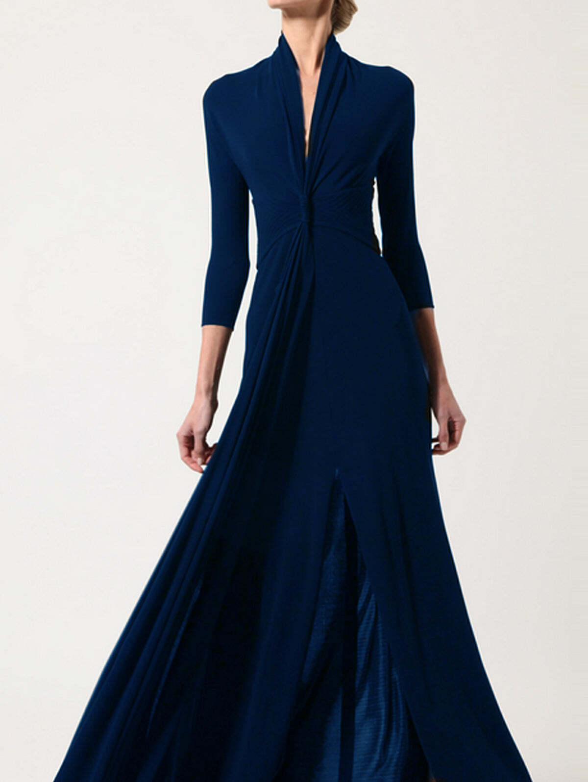 Elegant V Neck 3/4 Sleeve Floor-length Flowy Dress